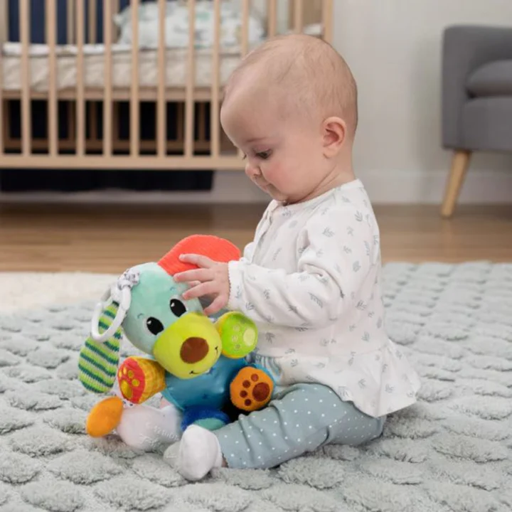 Moreover, when you squeeze his nose, he barks and pants just like a dog! The Lamaze Pupsqueak also has a clip-and-go ring, making him the perfect companion for all your little one’s adventures.