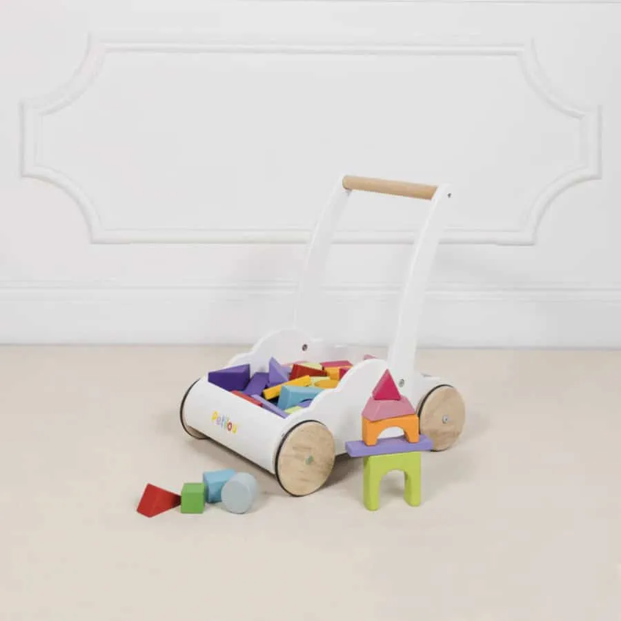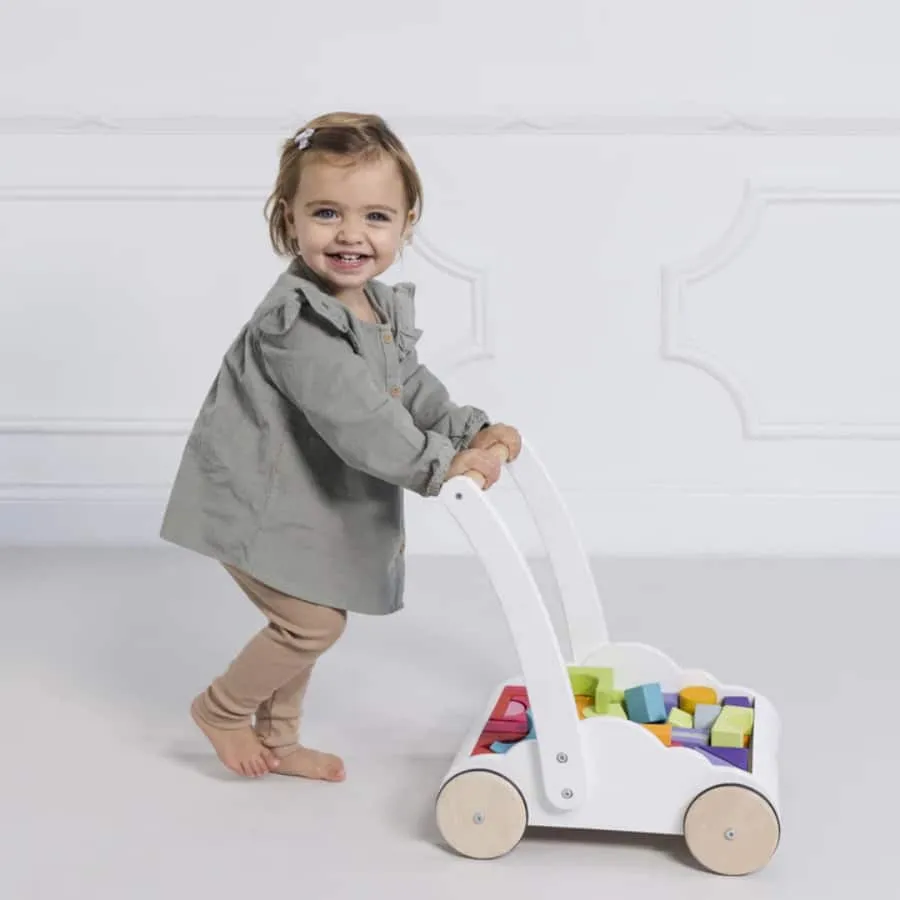 This versatility of this delightful baby walker, complete with 45 durable chunky rubberwood blocks painted in the colours of the rainbow using child safe paints.