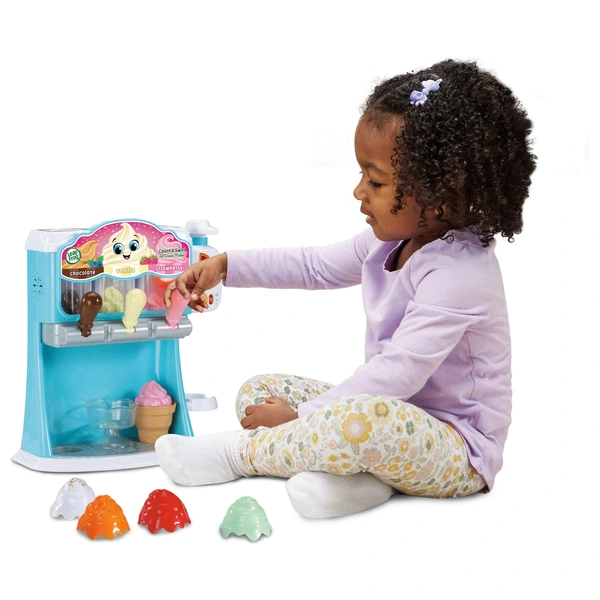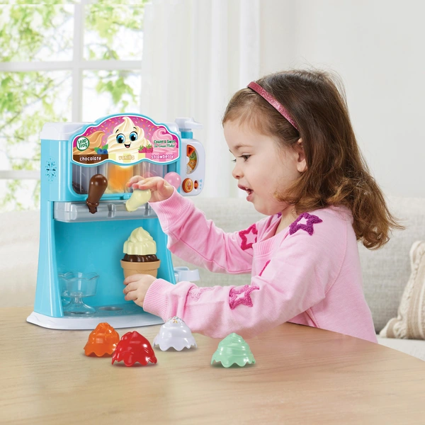 Give ice cream a whirl with the LeapFrog Count & Swirl Ice Cream Maker. This retro ice cream machine comes bundled with 12 pretend accessories for fantastic role-play fun. Press the customer order button to hear pretend customer orders. And then pop the 6 ice cream swirls into the top of the machine and get ready to serve.