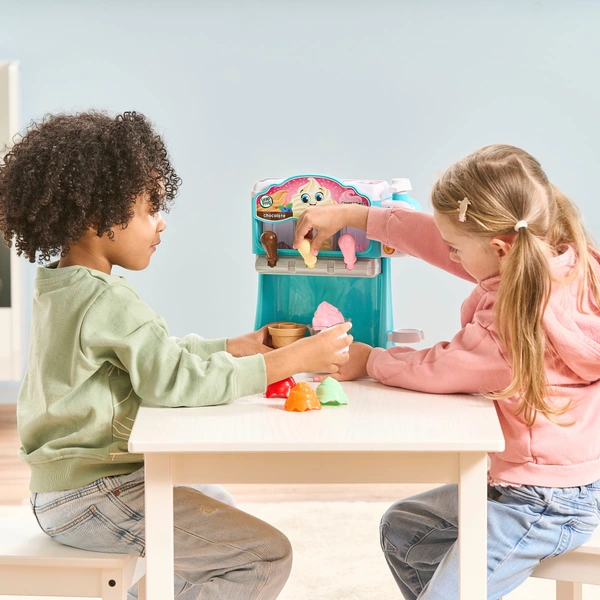 Pull the levers to release the ice cream into the cone or cup and learn ice cream colours and flavours. Toggle the topping switch to select one of four delicious toppings and to top it all off add some syrup. You choose the flavour! Suitable for young children aged two years and up wards.