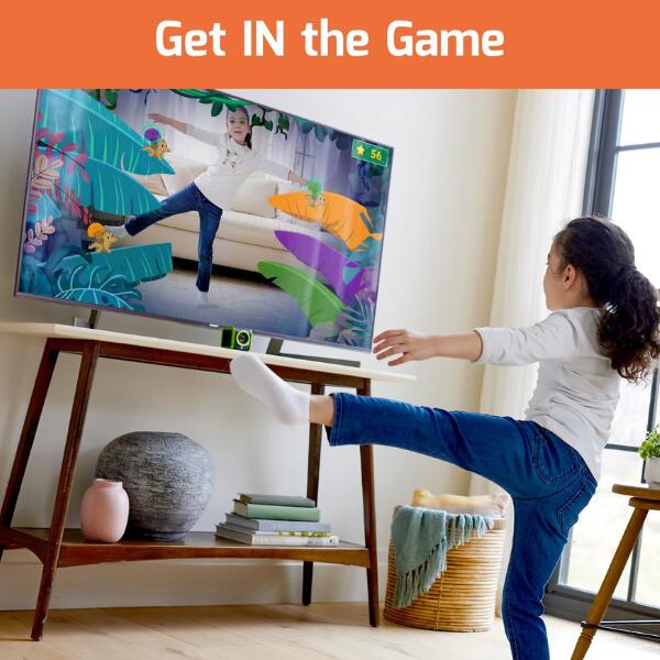 Get in the game and be transported into the Enchanted Forest, where kids can explore motion-based learning games while seeing themselves on the screen! Be the main character or transform into a cat, dragon or armadillo. Jump, dodge, catch, fly and more through 10 fantastical games with three learning levels that support school and motor skills as kids grow.