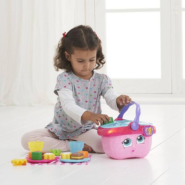 Introducing the LeapFrog Shapes & Sharing Picnic Basket. Pack a picnic for two and ye can pretend to snack on yummy treats while exploring food, shapes and colours. Then, put the pieces back in the basket for fun on the go. Hear the polite picnic basket make food requests, then drop the correct food in the basket for very rewarding responses. Includes Music, Shapes & Colours and Picnic Time modes for a wide range of exciting activities. Drop the food pieces in the shape sorter to hear the basket recognise all the food and say the shape and colour of each one. Teaches and models good manners by saying please, thank you and much more. Shop our full range of baby and toddler toys online or instore.