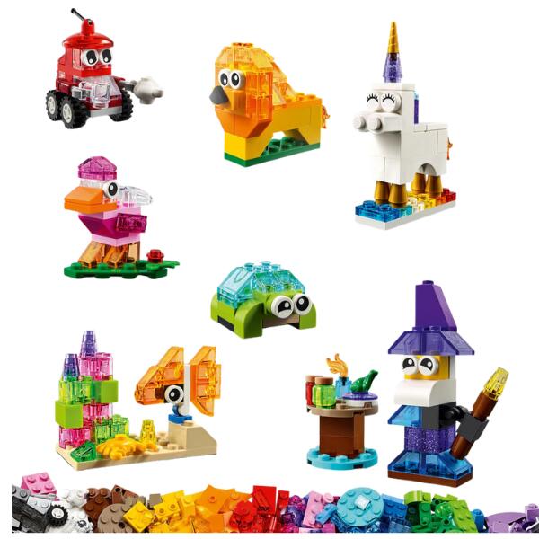 • Build and play with the 8 toy models in the LEGO Classic Creative Transparent Bricks (11013) playset is just the beginning. Children