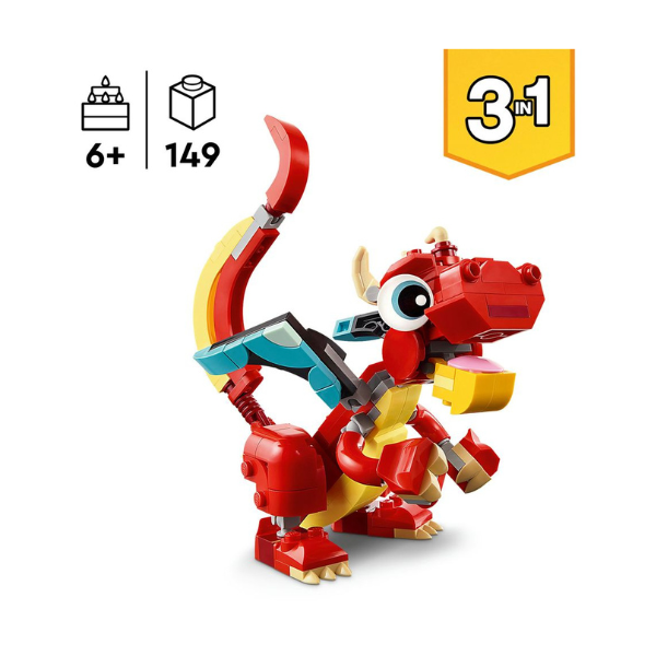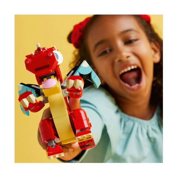 It’s time to get creative with this magical LEGO Creator 31145 3-In-1 Red Dragon and Animal Figures Set. Featuring a friendly red dragon, with posable arms, hands, wings, legs, feet, and also a posable mouth for dynamic poseability and playability!