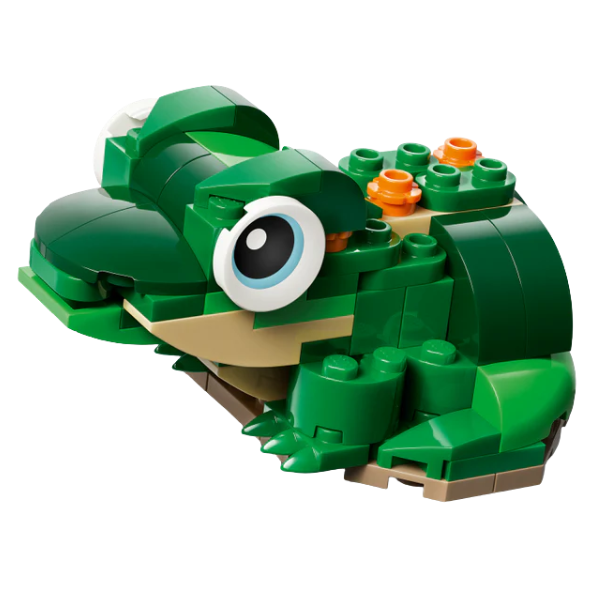 Kids can choose to build a turtle toy with a posable head and mouth, which comes with a beautiful pink water lily flower. This can then be rebuilt into a chameleon lizard toy. With a posable head and also tail, or a frog toy with a moving mouth. Once playtime is over, each model can be displayed as fun room décor.