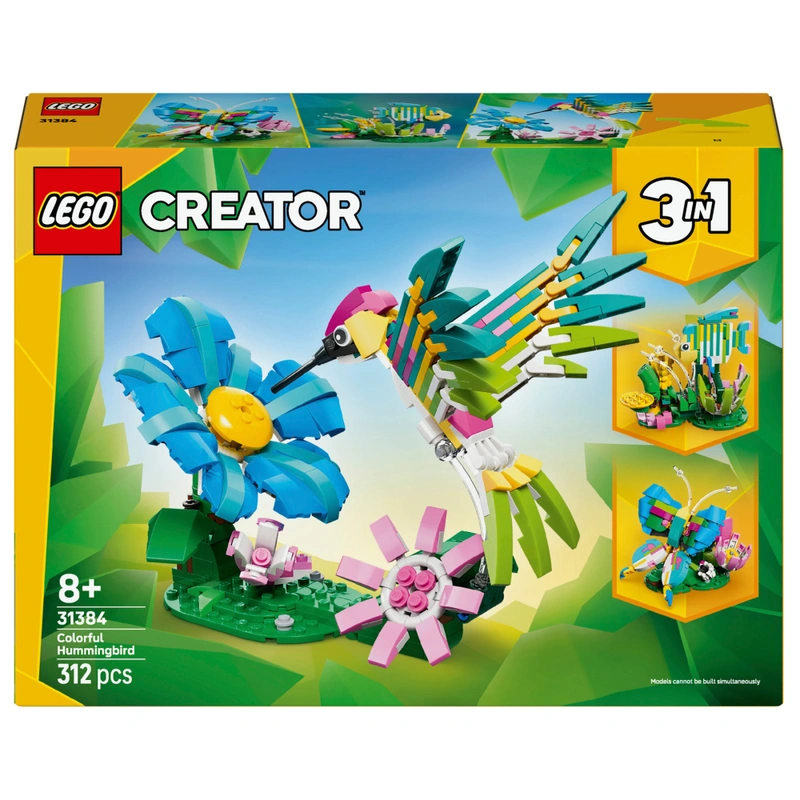 Animal-loving kids can play out charming stories with this LEGO Creator 31384 3-in-1 Wild Animals: Colourful Hummingbird Set! LEGO Creator 3-in-1 sets inspire kids imaginations with 3 different building options in every box, so they can build, rebuild and build again. Please note that models cannot be built simultaneously.