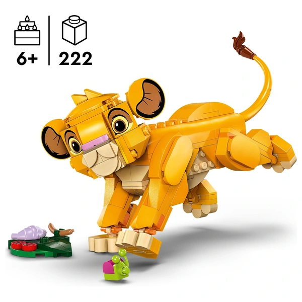 Introducing LEGO Disney 43243 The Lion King Simba Cub Building Toy. This  Lion King Simba Cub Building Toy features a buildable character model that celebrates The Lion King’s 30th anniversary. The Simba cub figure from the hit film has a rotating head and movable legs and tail, and it comes with a leaf and 4 ‘bugs’ for ‘food’. This The Lion King buildable toy playset helps boost children’s confidence and inspire creative play.