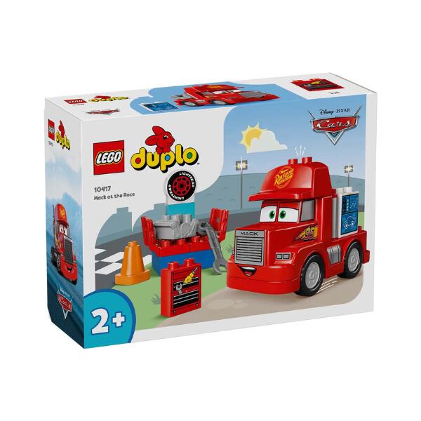 Introducing the LEGO Duplo 10417 Mack At The Race. Turbocharge playtimes for preschool vehicle fans aged 2 years old and over with this LEGO Duplo 10417 Mack At The Race build-and-play toddler toy inspired by the Disney and Pixar Cars films and featuring a big red buildable toy truck.