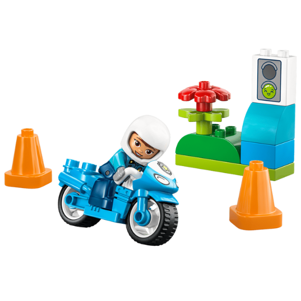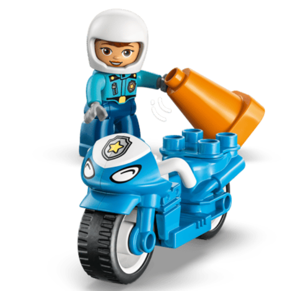 • POLICE TOY FOR CREATIVE PLAY – Toddlers create fun community-helper stories and use fine motor skills to place the police officer on her LEGO® DUPLO® motorbike and drive her round the cones