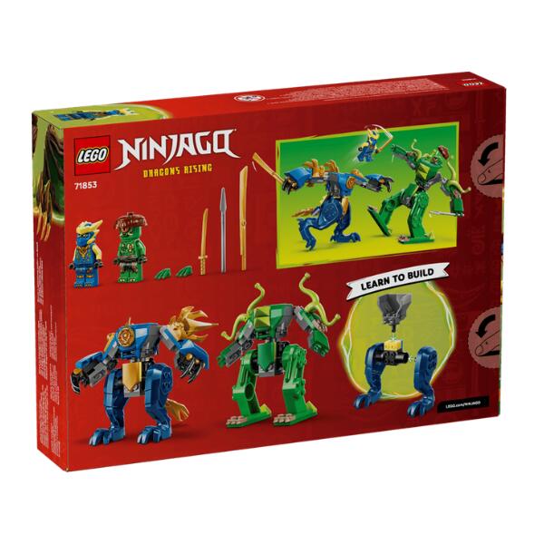 Boys and girls ages 4 and up can learn to build and play out battle scenes from season 4 of the NINJAGO® Dragons Rising TV show with this fun mech toy. The LEGO Ninjago 71853 Jay’s Dragon Mech Fight adventure toy comes packed with 2 mechs and also 2 minifigures. Jay’s dragon mech has an opening cockpit for his minifigure and posable tail, wings, arms, legs, body and fingers, while the Mutation Monster’s battle mech has an opening cockpit for his minifigure and posable tentacles, arms, legs and tor so.