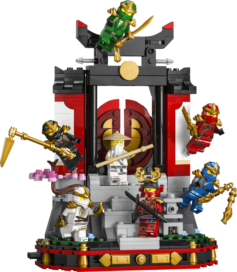 Boys, girls and nostalgic ninja fans ages 14 and up can celebrate the 15th anniversary of the LEGO® NINJAGO® TV show with this Ninja Character Display 15th Anniversary (71866) set packed with 8 minifigures. This great value ninja toy monastery features steps, an opening gate, a stone lantern, a cherry tree covered in blossom. And a tearoom at the back with stickers depicting a famous NINJAGO battle.