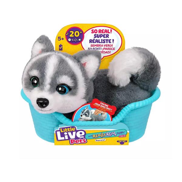 Little Live Pets My Really Real Puppy Minis! Meet Aurora, the adorable Husky puppy that looks and feels so real with the softest fur, irresistibly cute puppy eyes and reacts to your touch with over 20 sounds and reactions!