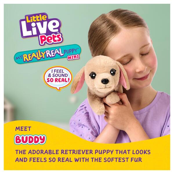 Meet Buddy, the adorable Retriever from Little Live Pets My Really Real Puppy Minis range! With soft, realistic fur and expressive puppy eyes, Buddy responds to touch with over 20 cute sounds and reactions. Gently pat his back to hear playful barks and happy whimpers, then tuck him into his cosy basket when it’s time to rest.