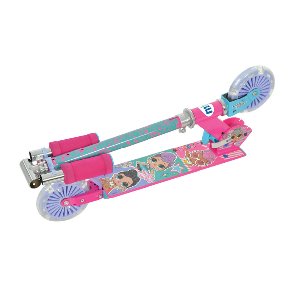 Get ready to light up the streets with the LOL Surprise Folding Inline Scooter! This officially licensed scooter is bursting with character, featuring motion-activated light-up wheels that add an extra dose of wow factor to your ride. With its colour printed anti-slip grip tape and fully printed stem wrap, you’ll be rolling in style wherever you go. The durable steel frame and puncture-proof tyres ensure confidence and longevity, while the reactive rear footbrake keeps you in control of your speed. Plus, with its adjustable handlebar height of 74-80cm, it’s perfect for growing kids who want to ride in comfort. Whether you’re cruising through the neighbourhood or showing off your moves at the skate park, this scooter is sure to turn heads and make a statement. So, grab your friends and get ready to ride in style with the coolest scooter on the block! Safety tested and suitable for ages 5 and up.