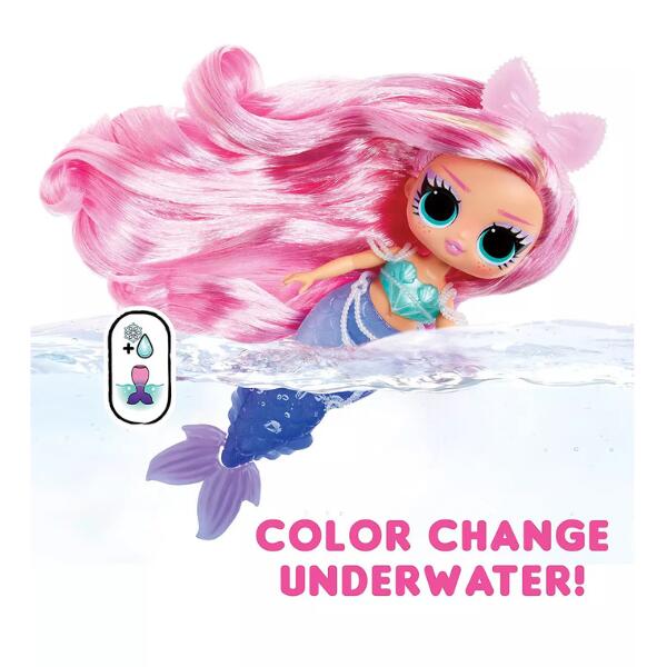 Dip your Tweens Mermaid doll into cold water and watch as her tail transforms colours from magenta to deep purple, creating a magical underwater experience! Don’t forget to style your doll with her charming accessories including her sea shades, seashell tiara, and cute pearl belt! Discover what’s inside each box including a fabulous L.O.L. Surprise! Tweens Mermaid doll, glasses, a headband, and a belt to complement the dolls tail. Collect all 4 glamorous L.O.L. Surprise! Tweens Mermaid fashion dolls: Cleo Clove, Lola Waves, Lana Marine, and Serena Finn for a complete set of endless mermaid fun (each sold separately).