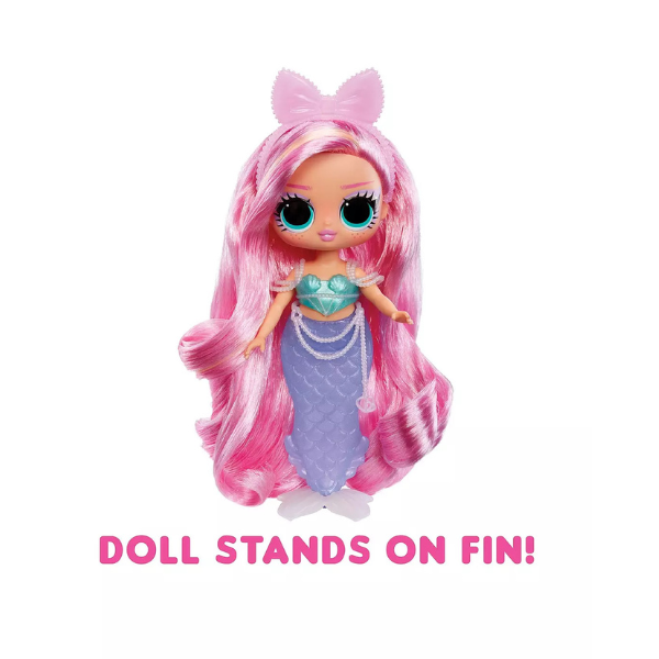Get ready to dive into an enchanting world of magical mermaid fun with the all-new LOL Surprise Tweens Mermaid Lola Waves Fashion Doll with dazzling accessories to unbox. She has stunning features, gorgeous hair, her own fashionable mermaid look, and comes articulated for tons of posing opportunities, including sitting as she bends at her waist! She can even stand on her fin, making styling your doll even easier with greater stability.
