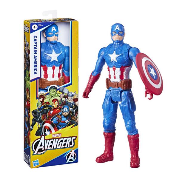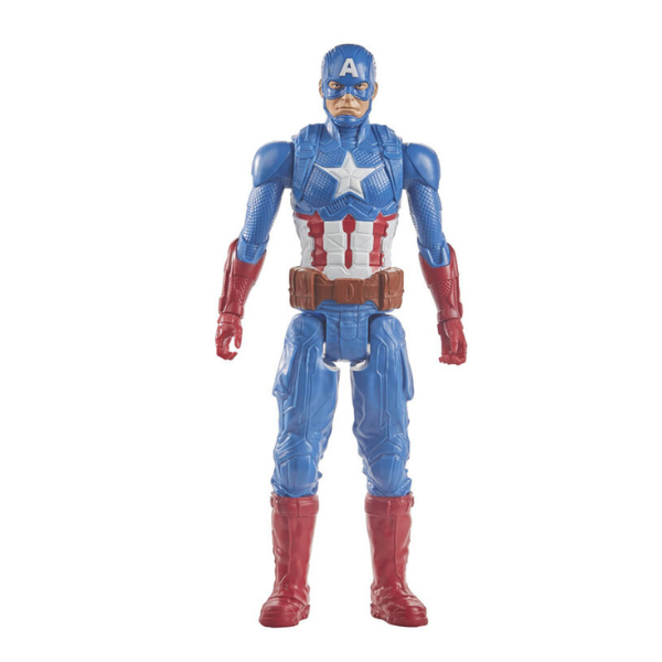 Introducing the Marvel Avengers Captain America 30cm Figure. With this Marvel Captain America action figure from the Titan Hero Series! These Marvel super hero toys are 12-inch action figures with articulated limbs and classic deco inspired by the Marvel Universe. For even more action-packed, world-saving fun, this Captain America toy is compatible with the Titan Hero Blast Gear launchers and projectile accessories included with Titan Hero Blast Gear figures! (Each sold separately. Subject to availability.)