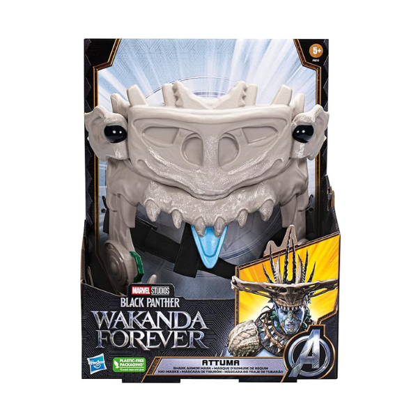 Ultimately Shuri, Okoye, Nakia, M’Baku and some unexpected heroes must overcome the grief of losing one of the world’s greatest superheroes to repel this powerful adversary and take their places among the legendary heroes of Wakanda. Gear up for an imaginative underwater battle as Attuma with this Black Panther Wakanda Forever Attuma Shark Armor Mask! Kids ages 5 and up can play as the warrior by wearing mask alone or by activating its extendable sides for a fierce hammerhead shark look. Collect more kids role play gear to dress up as your favourite Marvel superhero. Marvel Black Panther Wakanda Forever Attuma Shark Armour Mask will make an ideal present for any superhero fan