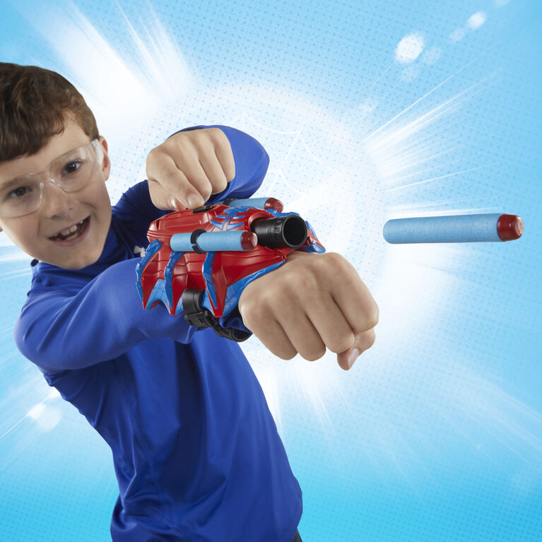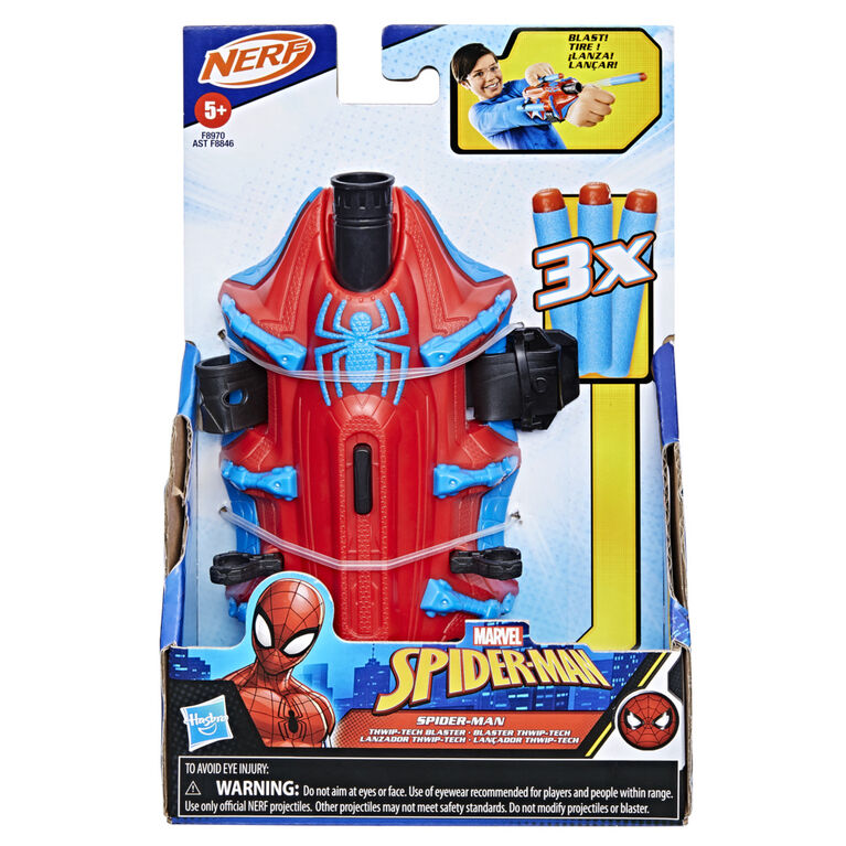 Spidey senses meet NERF power with this Marvel Spider-Man Thwip-Tech Blaster! Kids 5 and up can strap on web blaster and pretend to TWHIP just like their favorite wall-crawling super hero. This role play toy includes 3 NERF darts, 2 c-clips on either side of the blaster for extra dart storage, and iconic design and deco inspired by the Marvel universe that kids know and love. Load up a dart in the front of the blaster, then press button to blast!