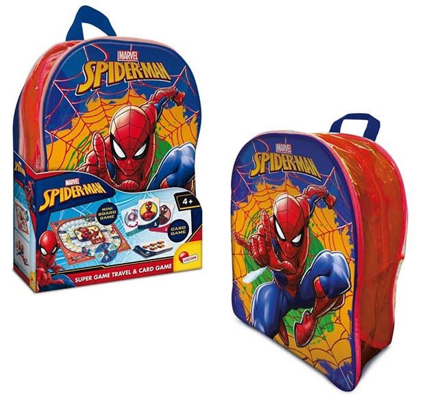 Two different games contained in this Spider-Man backpack. A route game and deck of cards for so many different games, a fantastic backpack of spider man 2 or more players. Board, Spinner-Tokens, 20 Cards, Instructions. Logical skills, attention and concentration, readiness, numbers and first calculations, shapes and colours, fine manual skills and hand-eye coordination, autonomy and respect for rules, relationship with others