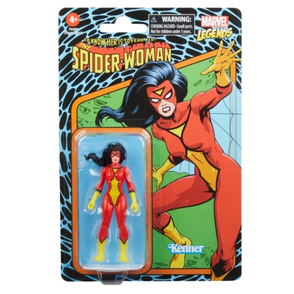 Introducing the Marvels Legends Retro Collection Spider-Woman 9cm Action Figure. Agent, Avenger, and also Private Eye. Evildoers beware when Spider-Woman glides by!