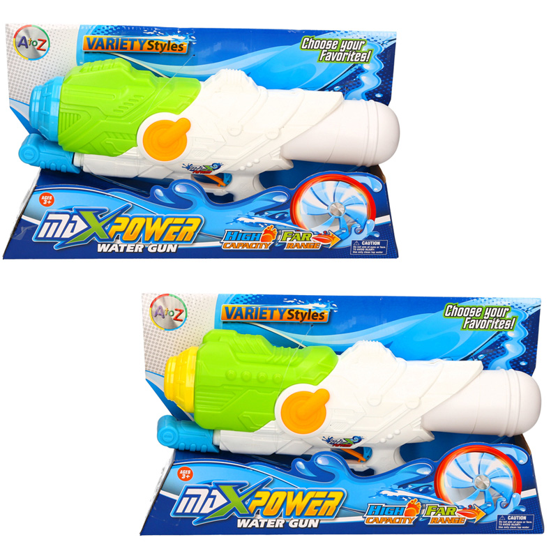 Feeling Hot on them warm summer days. Why not try the Max Power Water Gun 40cm Pump action water gun. Its an great fun way to cool down in that hot sunshine. Packaging dimension: 42 x 23.5 x 10.5cm. The guns are recommended for kids age 3 years and older. They are made from durable and also lightweight plastic, these water guns are the perfect size for children and also adults.