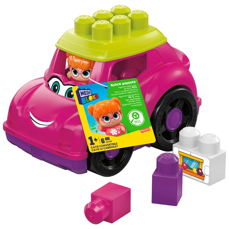 Little builders can roll out in style when they place their Block Buddies driver inside this pink Mega Bloks Lil Vehicles Catie Convertible car. This building set comes with 1 rolling convertible and 4 big building blocks.