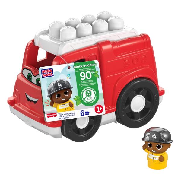 Roll out for playtime with the Mega Bloks Lil Vehicles Freddy Firetruck toy. Toddlers can sit their Block Buddies driver inside the recycling truck and haul out to work.