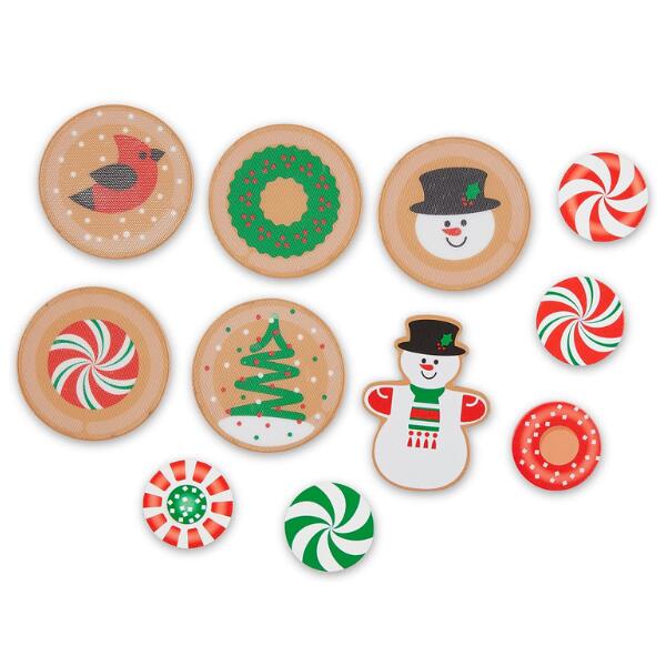 “Icing” cords and wooden candy pieces cling to self-stick tabs to create unique designs again and again. Enhance pretend play with “baking” pan, wooden spatula and knife, oven mitt, play food packages, and more.