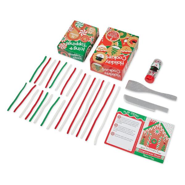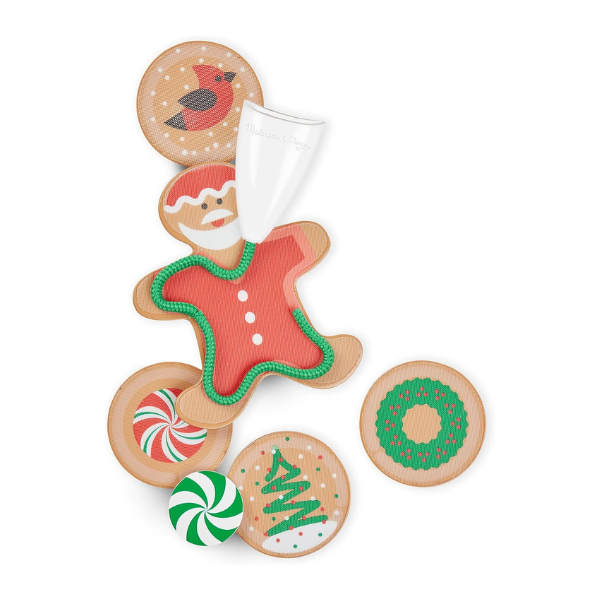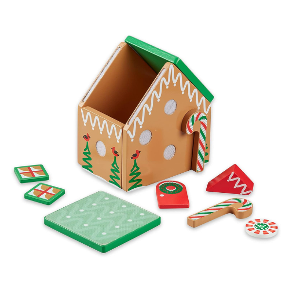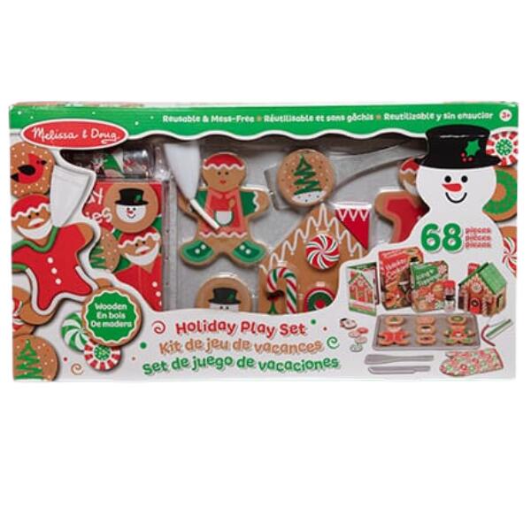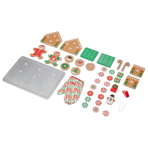 This Melissa & Doug Deluxe Holiday Baking Set is everything kids need to build their own wooden gingerbread house and decorate wooden cookies.