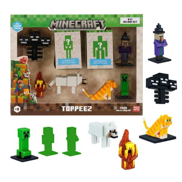 Minecraft’s fun comes from the virtual world, joining you for the latest adventures. The good and bad characters of this world, where users can create whatever they want using blocks, are featured in the Minecraft 3D Toppeez Figure and Pen Cap Deluxe Set of 8. They’re ready to be part of the most entertaining collections and exciting games.