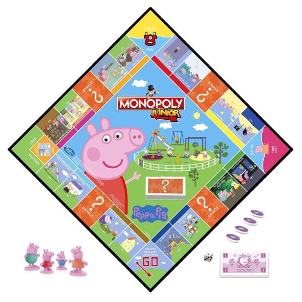 Learn to earn with Peppa and her family! In this Monopoly Junior board game, kids can imagine being part of the happy and fun world of Peppa Pig