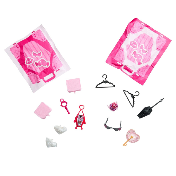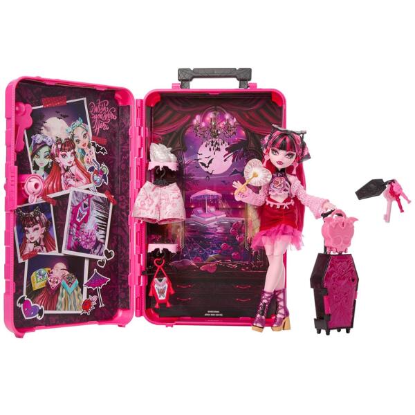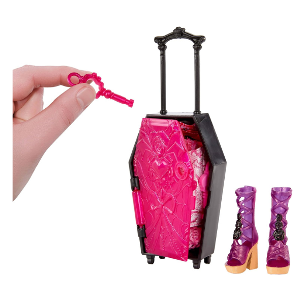 Monster High Skulltimate Secrets Draculaura Doll & Accessories Set. Reveal a Monster High doll, unlock accessories, and take the trip of an unlifetime with Skulltimate Secrets, Destination: Gore-geous Oasis! Kids can discover the secret to a dream scare-cation with this spooky set, which includes over 19 surprises — but first, they must find the three keys that will, one-by-one, unlock all the travel-themed clothing and accessories! Each sold separately, subject to availability. Fully articulated. Dolls cannot stand alone. Colors and decorations may vary.