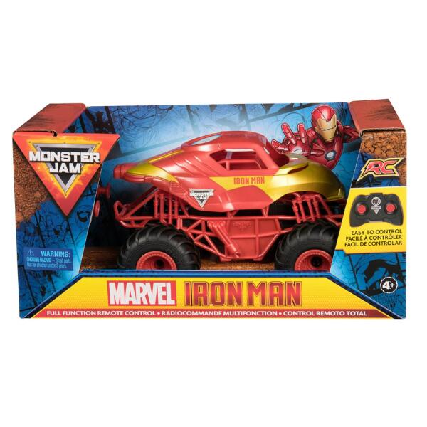 Dive into heroic playtime with the Iron Man RC Monster Truck from Monster Jam. This bright red and gold truck brings the excitement of Monster Jam into your home, designed for ease of use and heroic adventures. Kids can feel like they’re part of Iron Man’s world, driving their very own monster truck with a kid-friendly remote that puts them in the driver’s seat. The truck is as durable as it is eye-catching, ready to tackle any mission kids can dream up. With the ability to race multiple trucks together, it’s perfect for play dates and Monster Jam parties. This makes for a great alternative to an RC car, RC plane, remote control boat, remote control helicopter and other RC trucks. Whether zooming across the living room or in the backyard, this truck is built for imaginative play. Gift the joy of Monster Jam and the wonder of Marvel with this Iron Man RC Monster Truck.