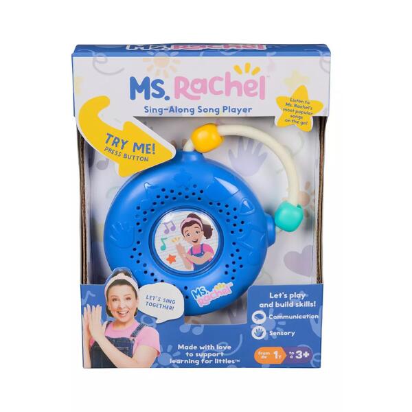 The Ms. Rachel Sing-Along Song Player toy designed for toddlers, featuring 14 musical sounds and beloved songs from Ms. Rachel’s educational videos. Interactive and educational, helping toddlers learn ABCs, numbers, and basic concepts. Portable, with a friendly design that includes Ms. Rachel’s sculpted face