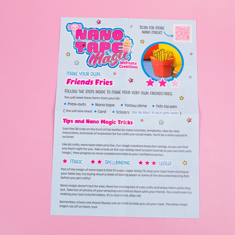 From super-cute stickers and slime-filled squishies, to bubble pets and bag charms, this versatile tape can be used to make all sorts of spellbinding crafts. We’ve added a pinch of magic to our kits so you can try the latest viral craft trend for yourself. Like all crafts, working with nano tape takes practise. Our jam-packed kits contain everything you need to master the magic, but don’t worry if you don’t get it right straight away – it’s all part of the fun!
