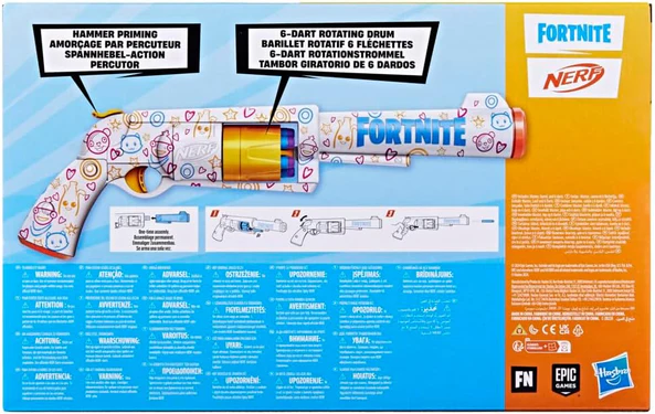 With its colourful wrap, hammer priming action and cool rotating drum. The Hasbro Fortnite blaster is bound to catch the attention of opponents when you drop into Nerf battles. Nerf foam darts are perfect for indoor and outdoor battles. The Frenz 4 Ever blaster is also a perfect present for Fortnite fans and a great addition to Nerf collections for play and display. Eyewear recommended (not included). No batteries needed.