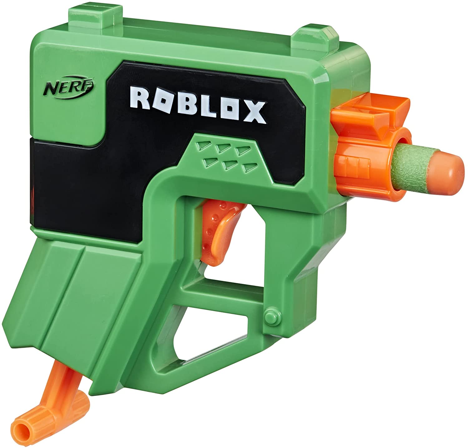 It features a compact size that’s great for carrying into battle and for displaying in Nerf and Roblox collections. This single-shot Nerf MicroShots Roblox blaster fires 1 dart at a time and is easy to use. Load 1 dart into the front of the blaster, pull down the priming handle, and press the trigger to fire.