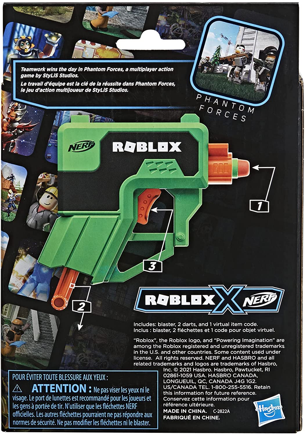 This Nerf Microshots Roblox Phantom Forces blaster takes its inspiration from the Roblox game Phantom Forces! The blaster includes a special code that allows you to redeem an exclusive virtual item on Roblox.