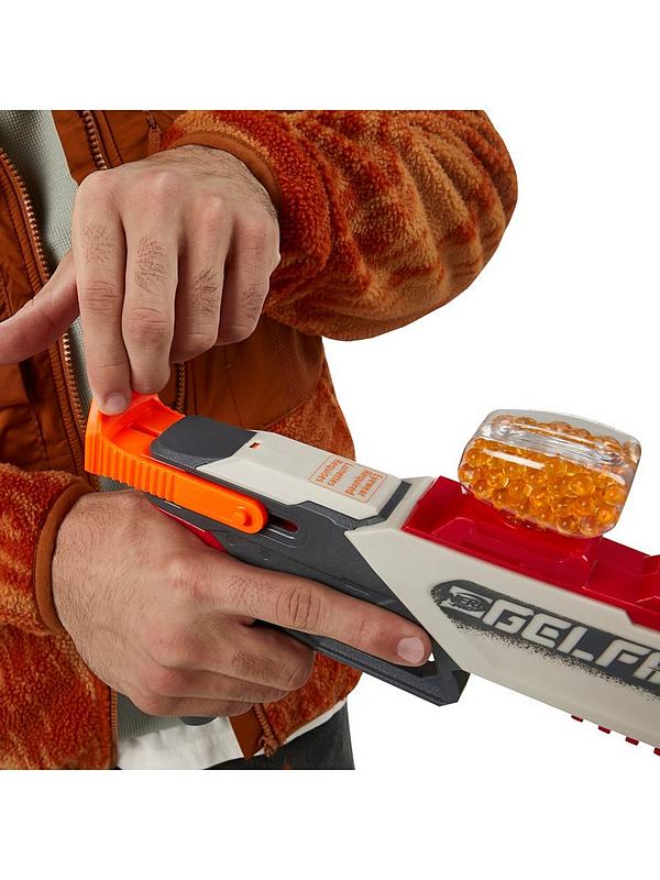 • Do not aim at eyes or face. Use of eyewear always required for players and people within range. Use only official NERF Gel Fire Rounds. Use only clean tap water to hydrate rounds. Do not freeze or modify rounds. Do not modify blaster. Impact from rounds may cause temporary marks on skin. Ages 14 and up. This is not a toy. Read instructions before use. Read instructions before use for important safety information.