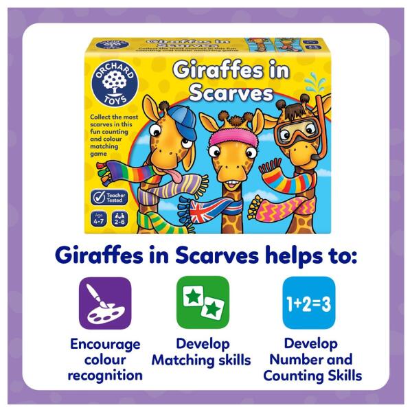 Designed for ages 4-7, Giraffes in Scarves offers the perfect balance between learning and fun! It can also be played by up to 6 players.