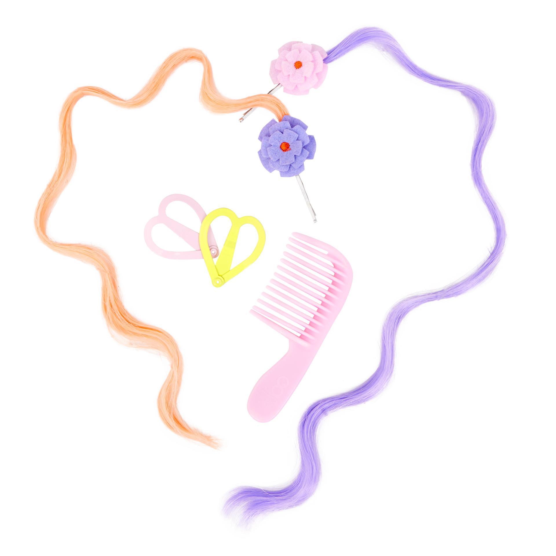 Plus, she comes with 2 colorful hair extensions and hair clips to bring your hairstyling creativity to life. Perla arrives wearing a cute white dress, a stylish denim vest, and casual shoes. Comb her soft wavy hair to keep it neat and tangle-free. Then make braids, pigtails, and more styles that tie into your imagination. You can even use the styling booklet for inspiration! How many hairstyles can you come up with for Perla?. Dimensions: 7.00 inch x 4.00 inch x 18.00 inch