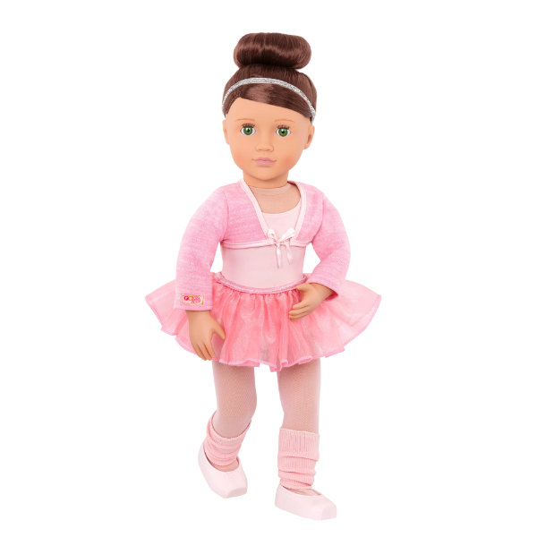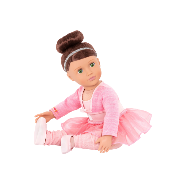 You’ll be the star of the show with Our Generation Sydney Lee And Stars In Your Eyes Doll With Story Book. This 18-inch ballerina has bright green eyes that open and close and dark-brown hair that is lots of fun to brush and style! She is a posable doll that can bend at the knees and elbows to dance ballet! Sydney Lee comes with two complete outfits. Her bright pink ballet performance apparel and a practice outfit that includes a purple, off-the-shoulder top, gray jogging pants, purple shoes, a tote bag, and a water bottle. She even comes with fun accessories like a yo-yo, 4 recital tickets, a newspaper, and headband. Read all about how Sydney Lee started ballet in the “Stars in Your Eyes” storybook! The easy-to-read chapters are suitable for younger readers, and it makes for a great bedtime story too!