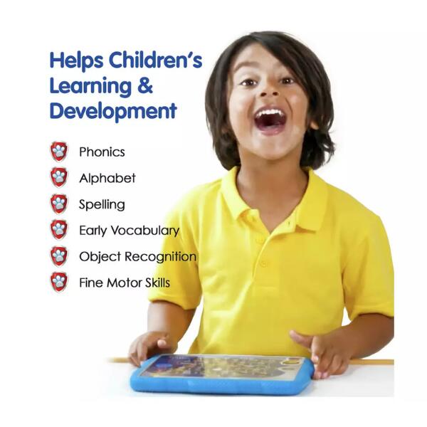 • Interactive Learning: Press any of the 26 letter buttons to hear the letter name, its phonetic sound, or a word associated with a member of the PAW Patrol team.