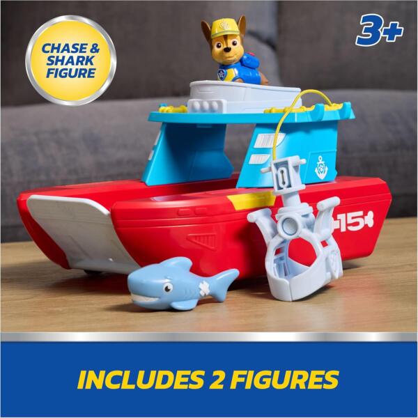 Dive into adventure with the PAW Patrol Sea Patroller Vehicle with Chase. This 22,8 cm rescue boat is ready for daring missions with two patrol modes—transform from sea to land with a simple shift of the cockpit. The set includes a Chase action figure and a shark figure, sparking endless storytelling possibilities. Kids can reel in the shark using the working rescue claw for imaginative play. These PAW Patrol learning toys are PAWsome for a birthday, Christmas, or any holiday. For even more fun, combine with a basic PAW Patrol vehicle or Lift “n” Repair playset, so the excitement never ends. (each sold separately) Relive cherished moments from past PAW Patrol seasons, like Fire Rescue and PAW Patrol Movie, or create new adventures with a PAW Patrol tower, individual PAW Patrol action figures and their PAW Patrol vehicles, for turbo-charged adventures. Age 3+ years