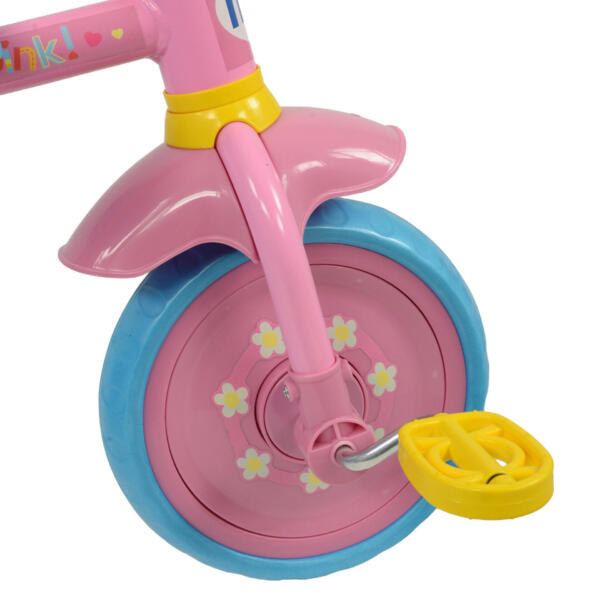 With colourful Peppa Pig character graphics, this sturdy trike offers loads of fun for any active youngster! A robust tubular steel frame provides extra stability, while the removable parent handle is great for giving your little one freedom to roam. The front wheel clutch makes freewheeling easy when pushing, and the adjustable handlebar height makes this Peppa trike ideal for kids of any size. What’s more, the handy rear bucket lets toys come along for the ride too!