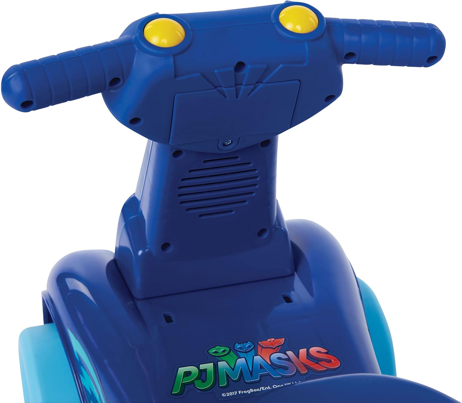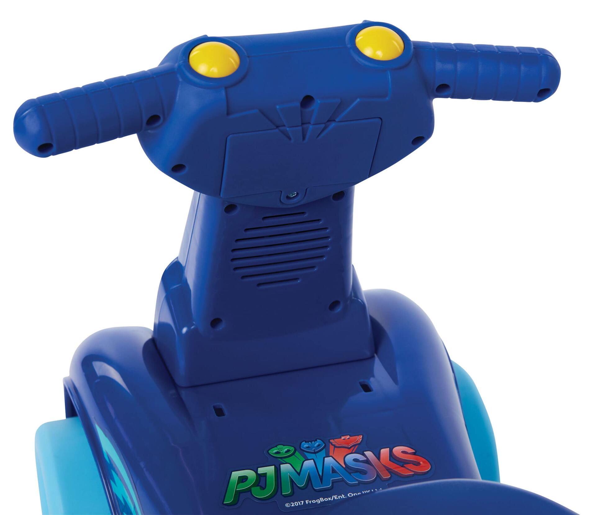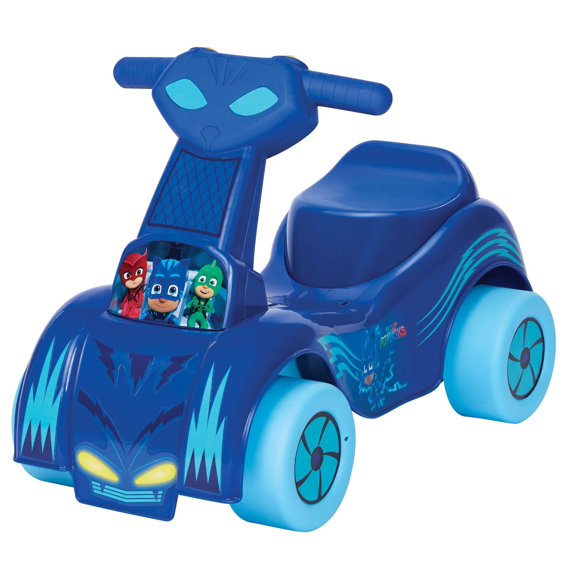 Introducing the PJ Masks Cat Car Push N Scoot. The PJ Masks Catboy push N scoot ride-on is the perfect scoot along ride-on for your child. It comes with great PJ Masks colorful graphics. It features design based on PJ Masks characters. This awesome ride-on is the perfect mode of transportation for your little one. It comes with an easy one-time lock customer assembled handle to help your child stay stable while they ride along. It also features a comfortable seat and wide wheels for stability. Suitable for children aged one to three years.