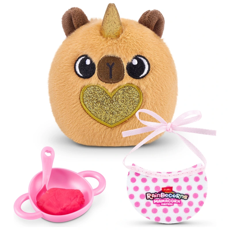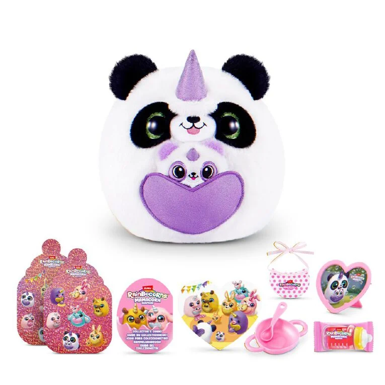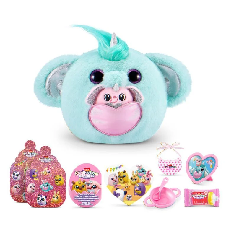 • Contents: 1x Rainbocorns Mamacorn Surprise Plush, 1x Egg, 1x Baby Plush, 1x Bowl, 1x Spoon, 1x Bib, 1x Photo, 1x Photo Frame, 1x Play Dough, 19x Stickers, 1x Birth Certificate and 1x Collector’s Guide