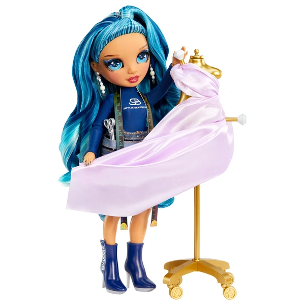 Dream and create your own fabulous fashion designs with Skyler in her iconic Rainbow High Dream & Design Fashion Studio Playset. Pretend to be a fashion designer just like your favourite doll, Skyler Bradshaw. You can bring Skyler’s designs to life with her design sketchbook by adding a little water!