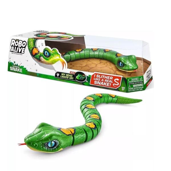 Live life on the wild side with Robo Alive’s Slithering Snake. Watch as your snake silently slithers, flicking its tongue on the hunt for its next meal. Eyeballs move just like a real snake and it comes in two realistic colors. Batteries not included. Get ready to scare friends and family with this ultra-realistic Robo Alive Slithering Snake. 2 colours available.This snake, which moves like a real snake and has realistic eyeballs, plus a tongue which flicks in and out, is ideal for little ones who love the animal kingdom. Children can pretend to care for their snake or use it for scary pranks. Slithering Snake is available in two colours — green and red (each sold separately). Robo Alive Slithering Snake Green will make an idal present and is sure to provide lot of fun and also entertainment.